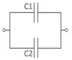 | Рис. 1. Последовательное соединение конденсаторов | Рис. 2. Параллельное соединение конденсаторов |