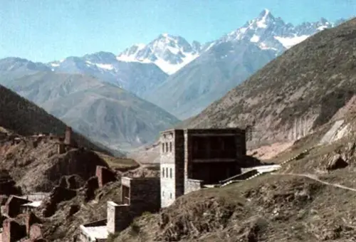 Учитель. К.Хетагурову пришлось побывать в горах Карачая, в Теберде. На картине изображён ледник Главного Кавказского Хребта Аман - Ауз.