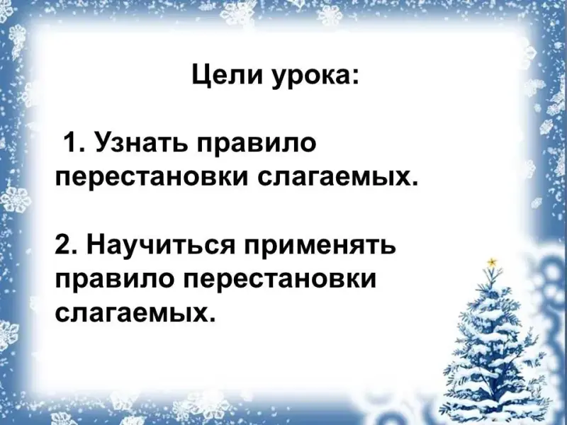 Цель: узнать правило перестановки слагаемых;