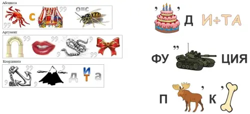 - при проверке домашней работы. Например, при повторении определений понятий. Тема «Координатная плоскость». Ребусом зашифровано понятие, обучающиеся разгадывают ребус и дают определение понятию.