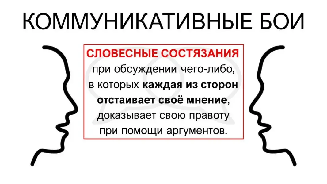 КБ - словесные состязания при обсуждении чего-либо, в которых каждая из сторон отстаивает своё мнение, доказывает свою правоту при помощи аргументов.