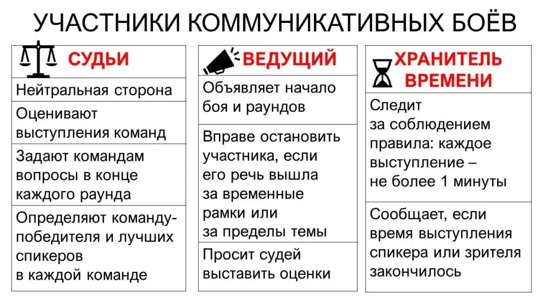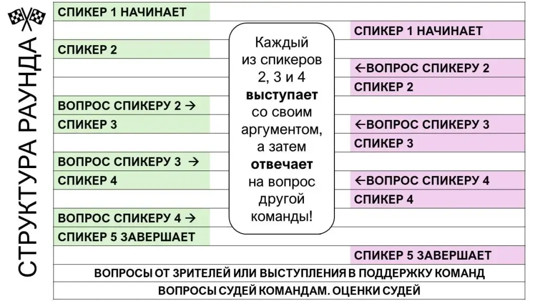 Ведущий руководит порядком выступления спикеров в раунде в соответствии со структурой раунда (структура на слайде 9).