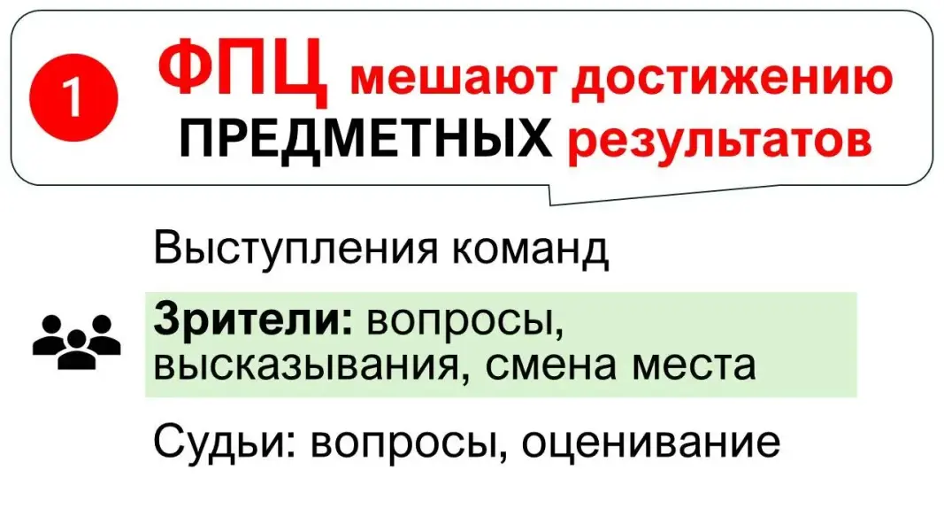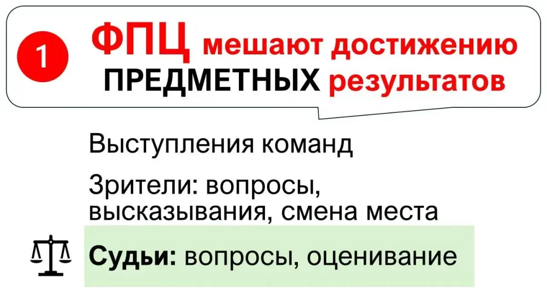 Ведущий объявляет первый раунд: «ФПЦ мешают достижению ПРЕДМЕТНЫХ результатов». |
