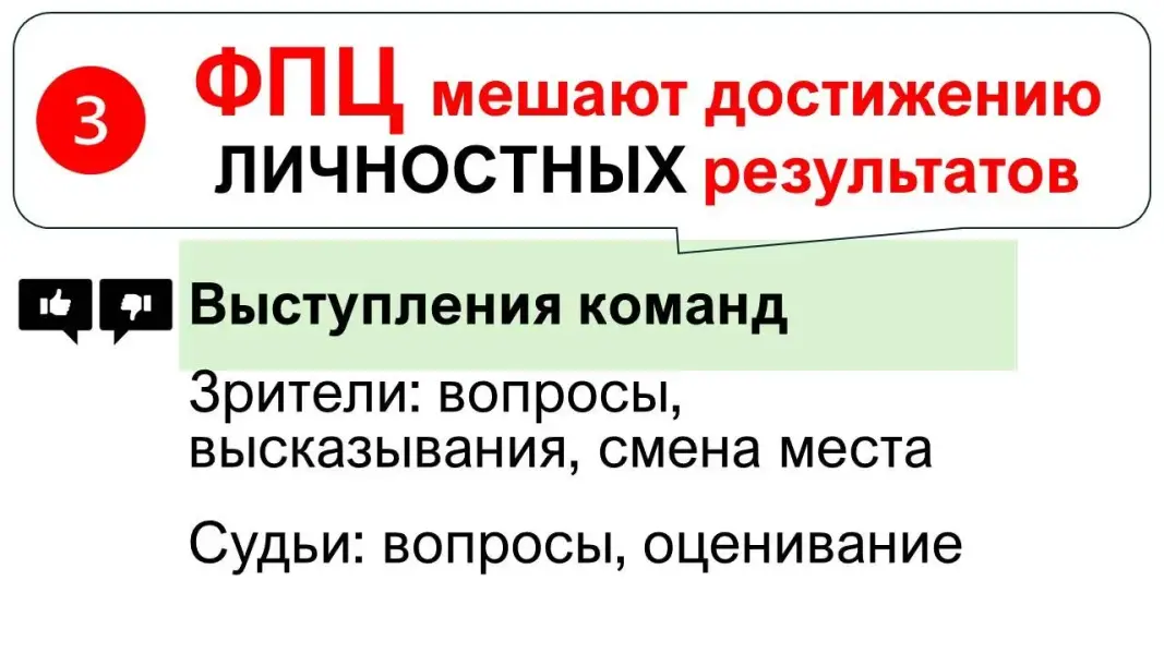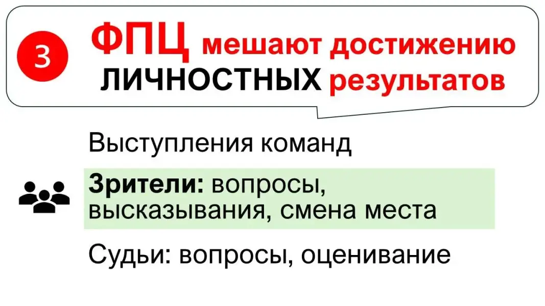 Ведущий объявляет третий раунд: «ФПЦ мешают достижению ЛИЧНОСТНЫХ результатов». |
