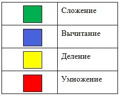 Цветные клеточки - это результат вычисления: сумма, разность, произведение или частное чисел.
