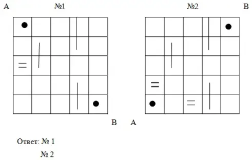 Вам нужно составить программу выхода робота из лабиринта. Начало движения точка А, конец движения точка В. Стрелочками укажите путь по лабиринту.