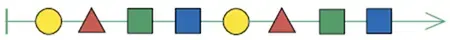 - Раскрась третий фонарик после каждого жёлтого синим.