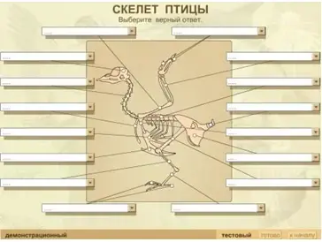 Средства обучения: влажный препарат «Внутреннее строение птицы»; диск 1С:Школа. Биология.7 кл.; диск Электронный атлас школьника- Зоология; компьютер; интерактивная доска, карточки.