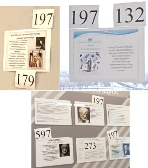Подсказка: По всему классу развешаны таблички с трехзначными числами. Ваш ответ: повторяющееся число на окне, стендах, на которое показывают левой рукой все участники группы.