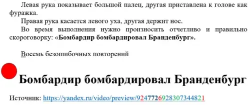 Выполните четыре повторяющихся упражнения: наклон вперед, поворот головы направо, несколько хлопков в ладоши, выпрямились и руки по швам. (При первом повторении один хлопок, при втором - два, при третьем - 4.