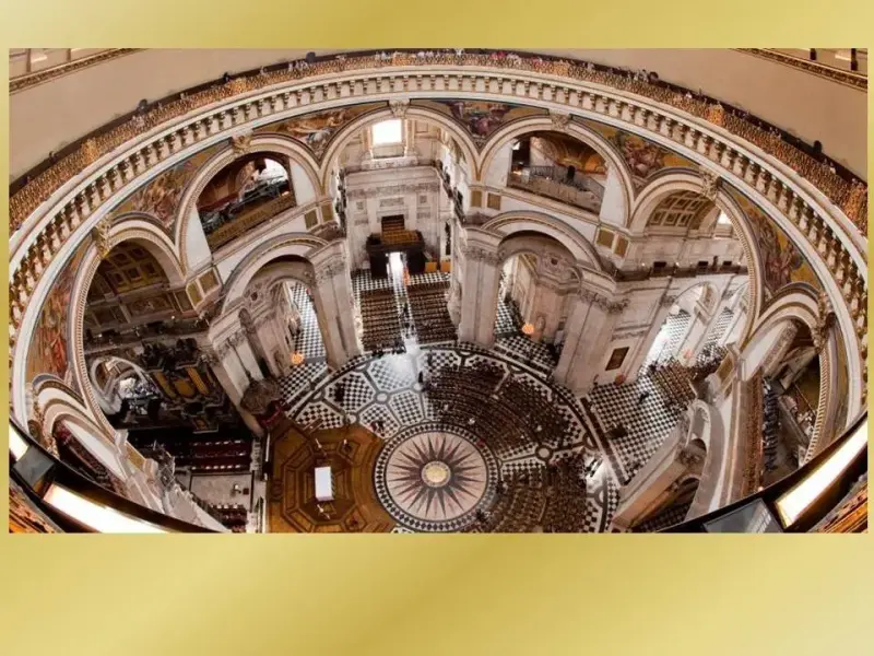 Купол составляет главную достопримечательность собора. Под куполом Собора расположено три галереи: внутренняя галерея шепота и наружные каменная и золотая галерея. Галерея шепота обязана своим названием не предусмотренной архитекторами особенности ее акустики: слово, даже сказанное шепотом, в одном конце галереи, многократно отражается ее стенами, в результате чего этот шепот вполне может слышать человек, находящийся на другом конце галереи, хотя расстояние здесь 32 метра. С конца XVIII века собор стал традиционным местом захоронения английских знаменитостей: художников, литераторов, военачальников. Первым удостоился чести быть захороненым в Соборе святого Павла его архитектор - Кристофер Рен. На его могиле не установлено памятника, и лишь приведена эпитафия на латыни "Lector, si monumentum requiris, circumspice" ("Читатель, если ты ищешь памятник - просто оглянись вокруг"). Здесь похоронены многие известные великие люди: адмирал Нельсон, герцог Веллингтонский, Уинстон Черчилль. Но здесь также проходили и более счастливые события: свадьба принца Чарльза и принцессы Дианы.