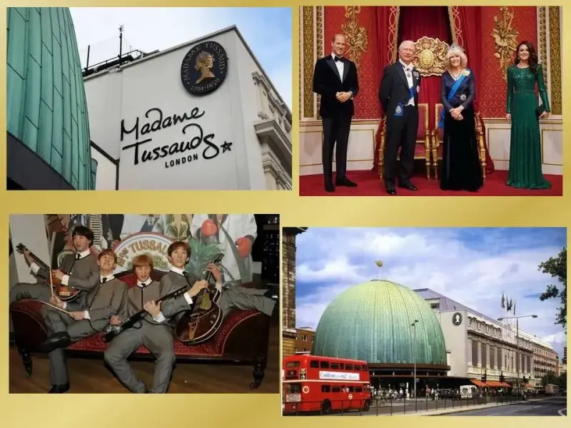 Музей мадам Тюссо - это музей восковых фигур. Здесь можно увидеть фигуры известных и знаменитых людей всего мира. Фигуры членов королевской семьи, принцессы Дианы, Маргарет Тэтчер, Горбачева, Ленина, Ельцина. Фигуры известных певцов и актеров: Майкла Джексона, Битлз, Мерилин Монро и других.