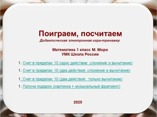 Дидактическая электронная игра-тренажер "Поиграем, посчитаем"