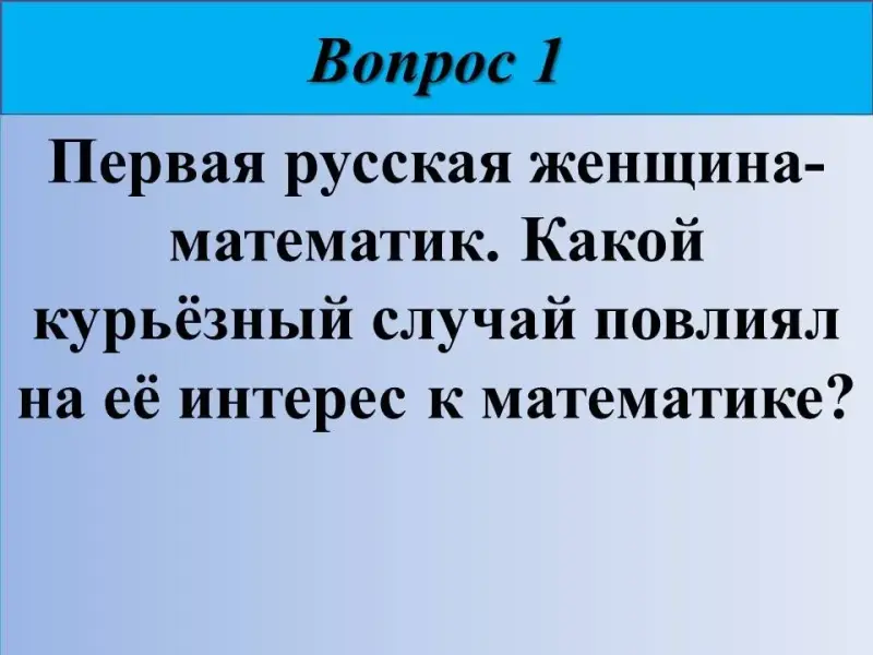 1) Первая русская женщина-математик. Какой курьёзный случай повлиял на её интерес к математике?
