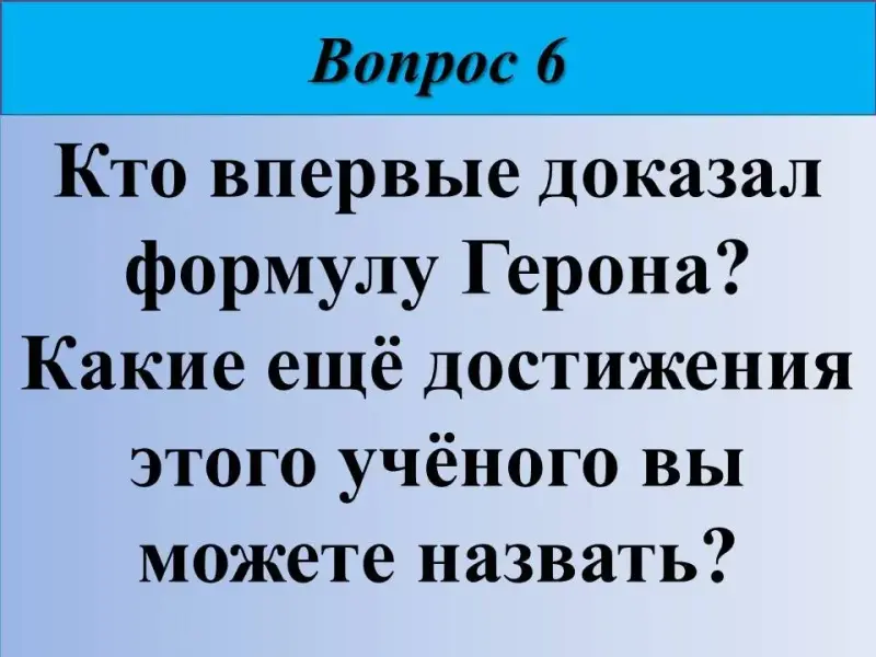 6) Кто впервые доказал формулу Герона? Какие ещё достижения этого учёного вы можете назвать?