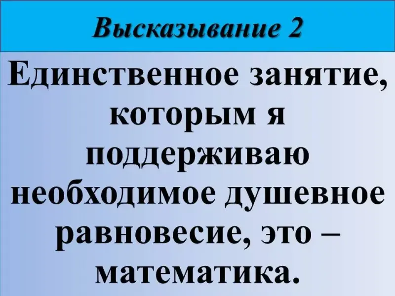 2) Единственное занятие, которым я поддерживаю необходимое душевное равновесие, это - математика. Немецкий философ Карл Маркс (1818-1883).