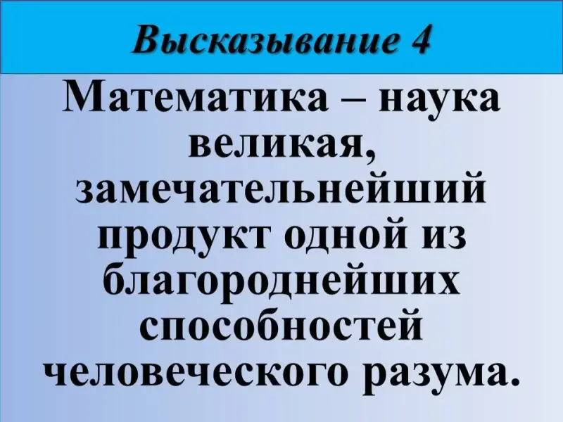 4) Математика - наука великая, замечательнейший продукт одной из благороднейших способностей человеческого разума. Русский публицист Дмитрий Иванович Писарев (1840-1868).