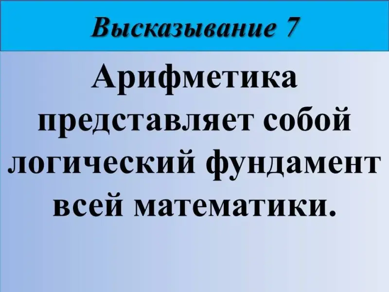 7) Арифметика представляет собой логический фундамент всей математики. Французский математик Анри Леон Лебег (1875-1941).