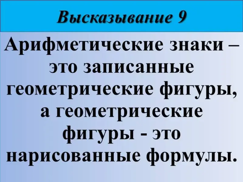 9) Арифметические знаки - это записанные геометрические фигуры, а геометрические фигуры - это нарисованные формулы. Немецкий математик Давид Гильберт (1862-1943).