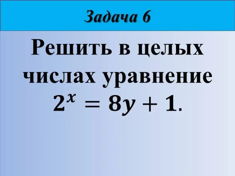 7) Решить в целых числах уравнение 2x = 8y + 1.
