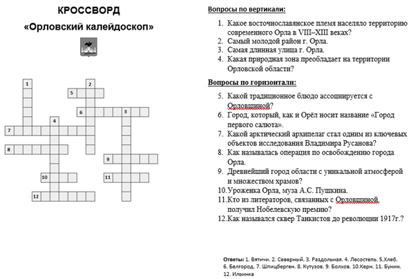 Интерактив: решение кроссворда «Орловский калейдоскоп»