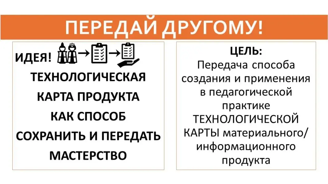 Мастер-класс "Передай другому: технологическая карта продукта как способ сохранить и передать мастерство"