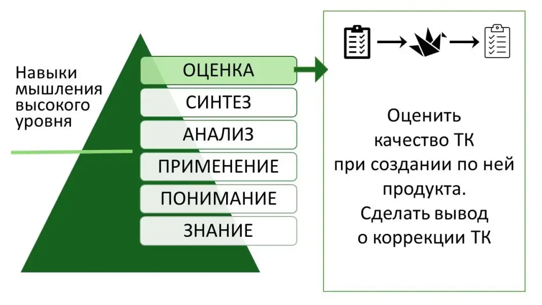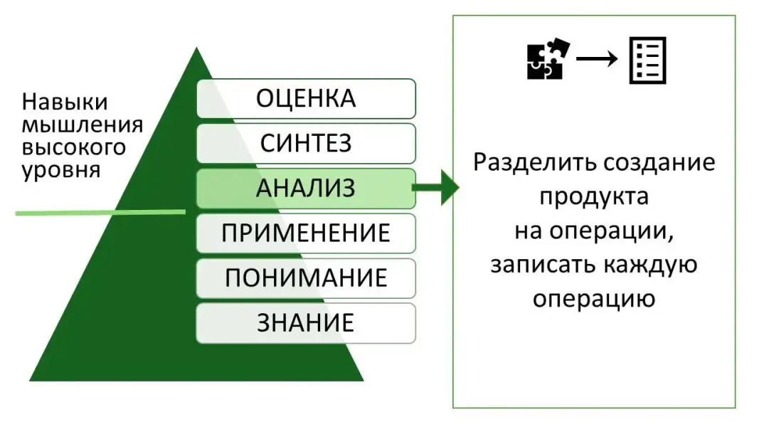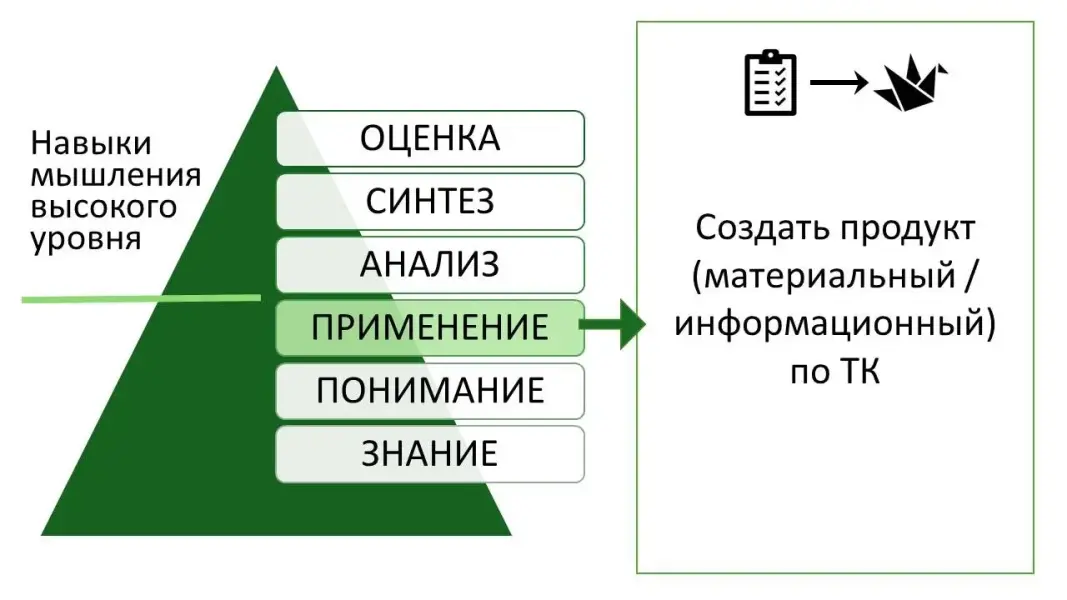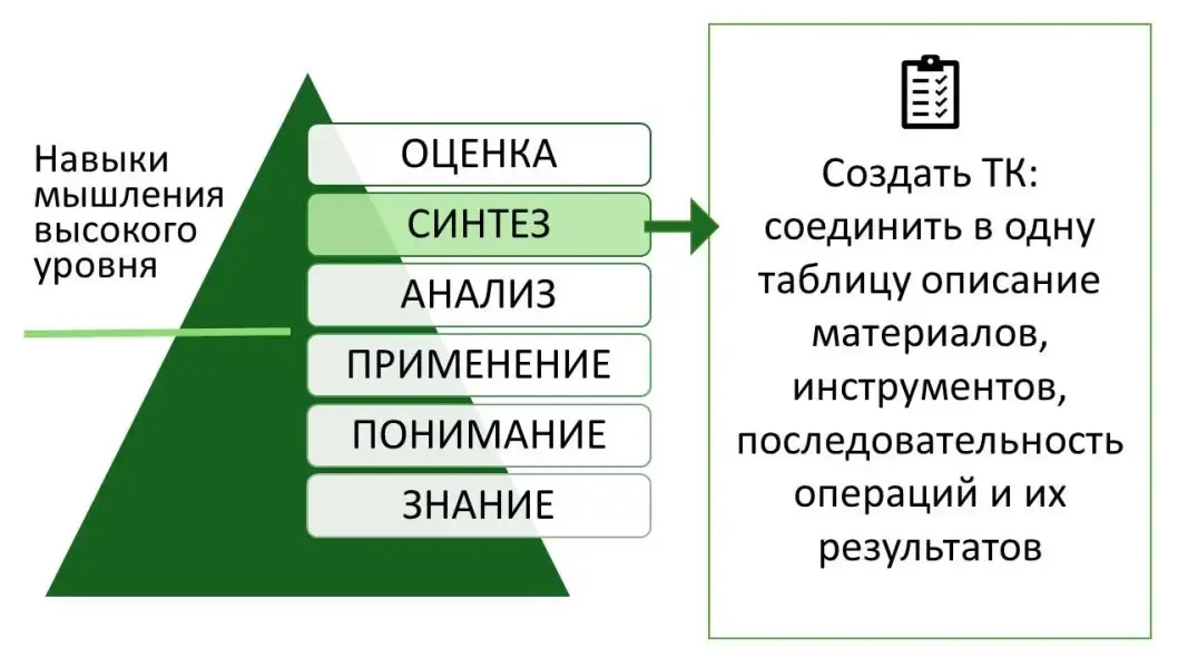 Слайд 31-35. Посмотрим на всем знакомую Таксономию Блума. Создание продукта по технологической карте и создание технологических карт развивает навыки базового и высокого уровня: применение, анализ, синтез и оценка.
