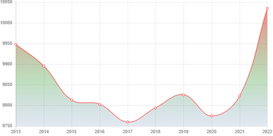 1. Общая численность жителей Сунтарского наслега на 2024 год составляла 10 тысяч человек. Данные графика показывают динамику численности населения с 2012 года по 2022 год.