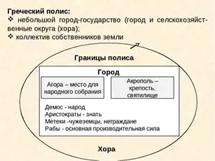 Основные понятия: полис, демос, демократия, аристократия, народное собрание, метеки, рабы.
