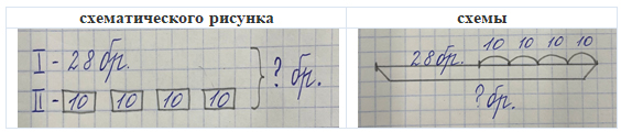 В ходе разбора задачи у детей может появиться не один способ решения задачи. Тогда и схема будет другая.