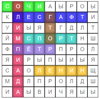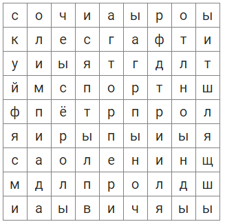 По горизонтали: Сочи, Лесгафт, спорт, Пётр, Ленин.