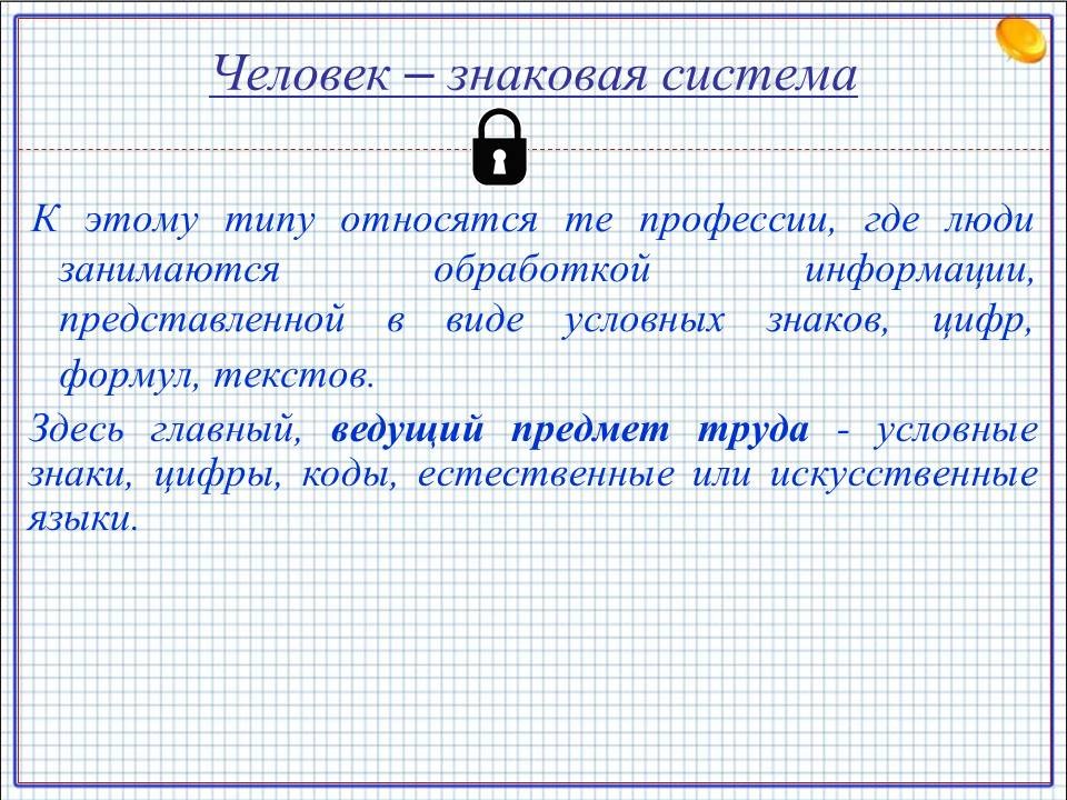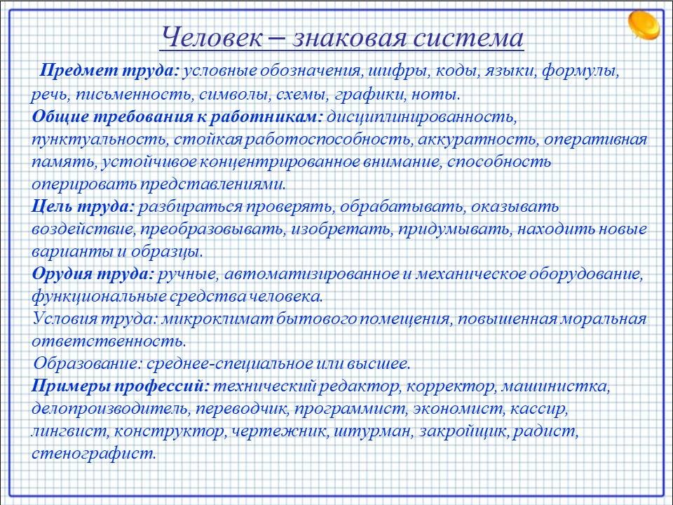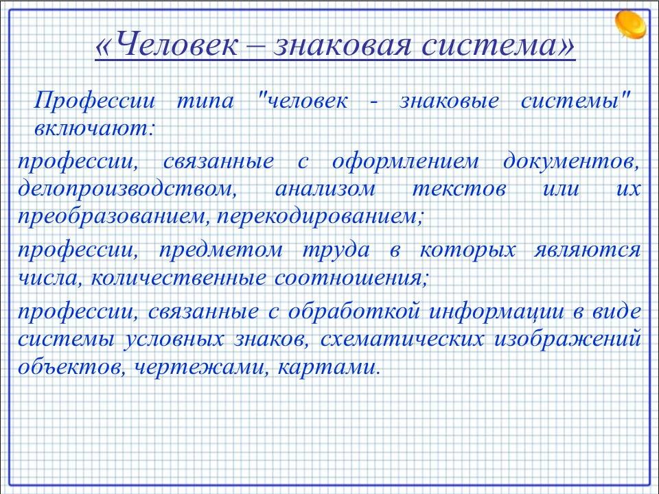 Профессиональный салон. Профессиональный тип «Человек – Знаковые системы»
