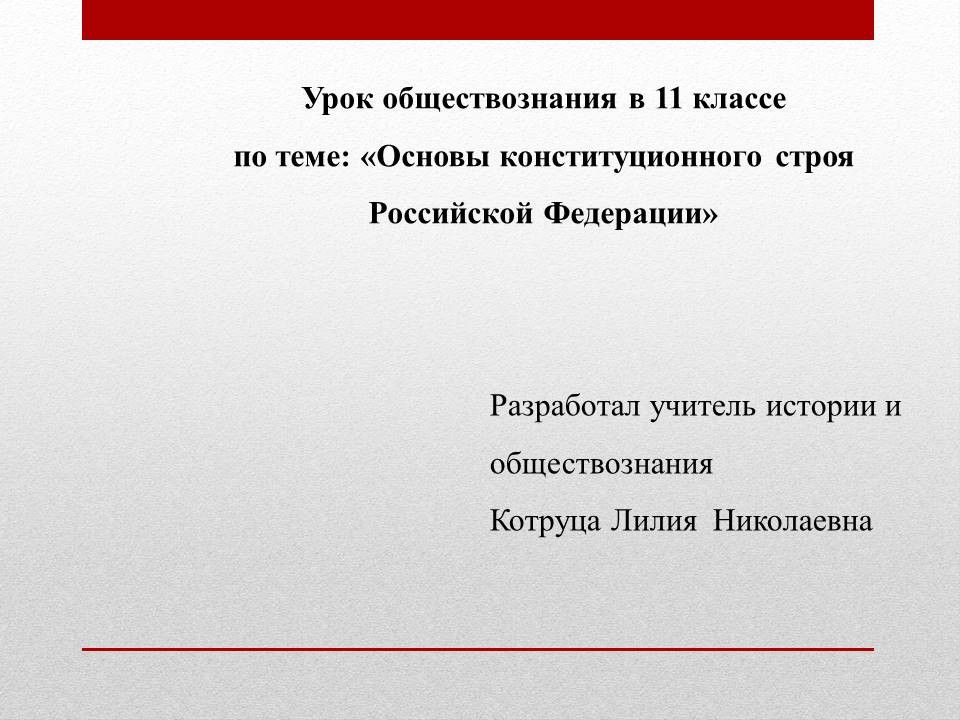 Презентация по обществознанию в 11-м классе по теме «Основы конституционного строя Российской Федерации»