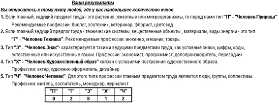 Рис.2. Лист обработанных результатов теста «Как выбрать профессию».