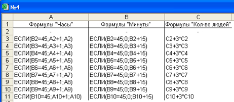 Рис.4. Лист решения задачи «Модель распространения слухов» в режиме формул.