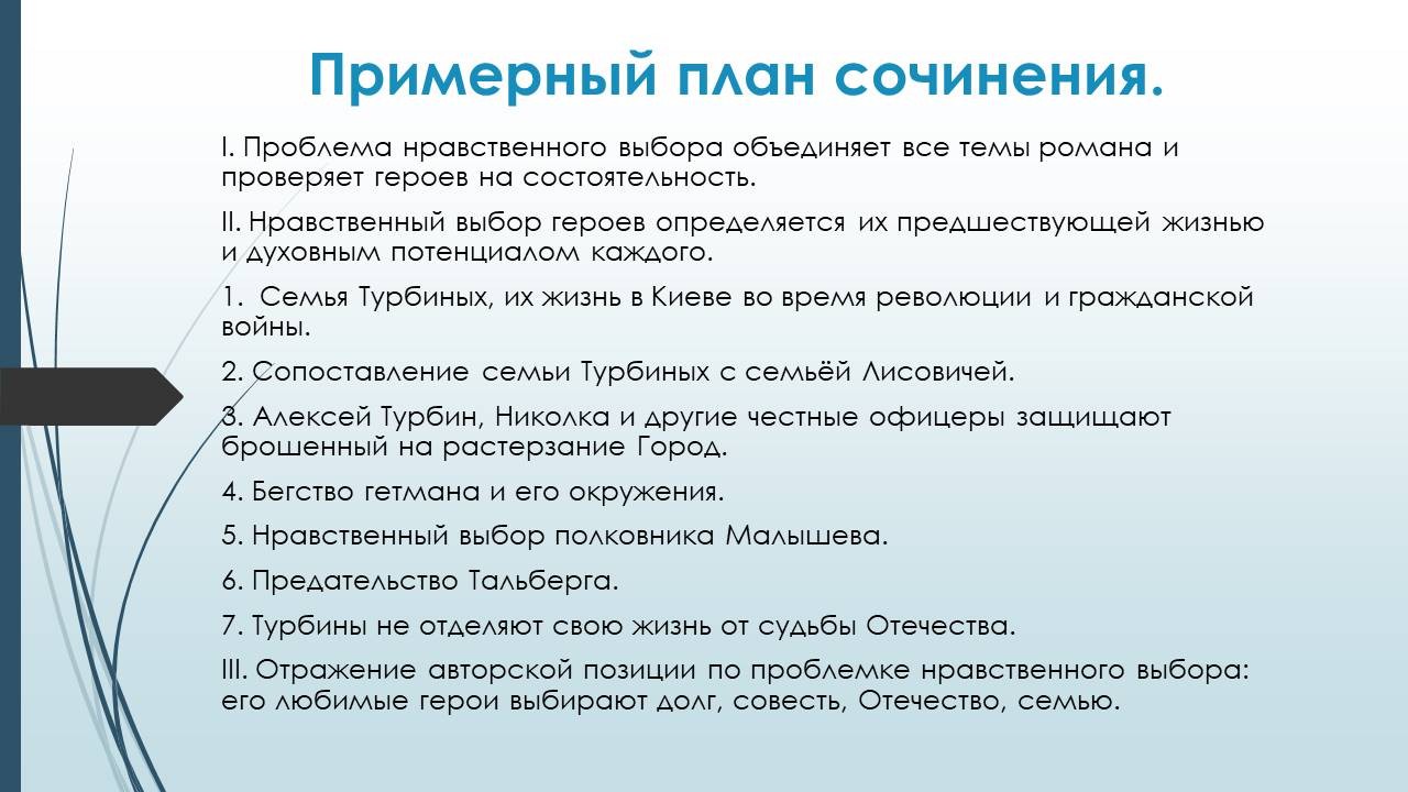 Проблема нравственного выбора в романе М.А.Булгакова "Белая гвардия". Подготовка к сочинению. 11-й класс