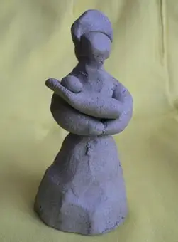 воронкой - получилась юбочка. Приделала голову, руки, колбаску изогнула коромыслом, ведёрки вылепила на голове - высокий кокошник, крохотный носик прилепила. Потом поставила сушиться фигурку сначала