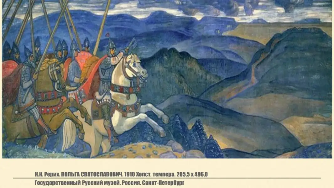 Вольга Святославович изображён на картине Рериха выезжающим со своею дружиною с дозором «во чисто поле» - охранять рубежи Руси.