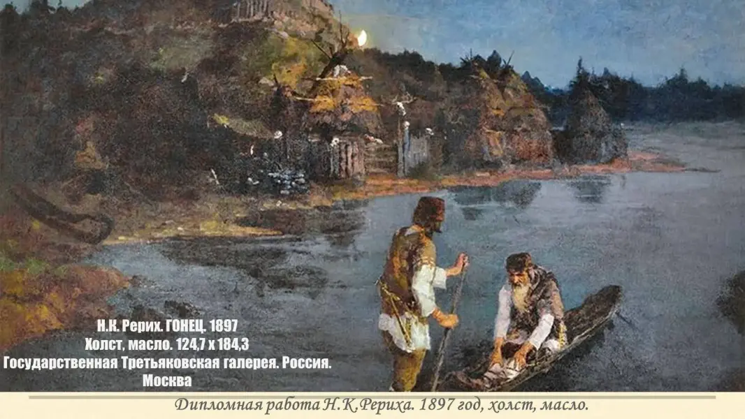 Дипломная работа Н.К.Рериха «Гонец. Восстал род на род» - с неё начался творческий путь Николая Константиновича Рериха. Эту картину прямо с академической выставки в 1897 году приобрёл Павел Михайлович Третьяков для своего собрания, что явилось признанием таланта молодого художника. Собирателя заинтересовали идеи молодого талантливого художника, его замыслы по созданию большой серии картин, посвящённых начальной истории Руси. Третьяков намеревался собрать всю будущую серию, но в 1898 году знаменитого коллекционера не стало, и его желание не сбылось полностью.