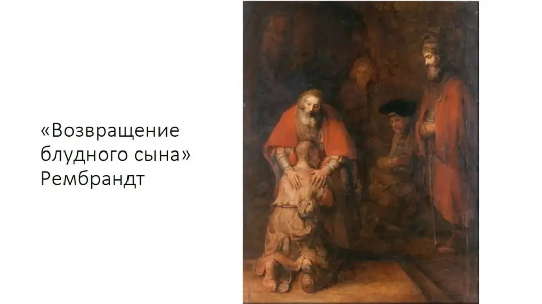 - Если вспомнить многие произведения раскрывают эти библейские понятия - умение прощать, умение раскаяться, умение вернуться к отчему дому. Притча «О блудном сыне» пронизывает всю