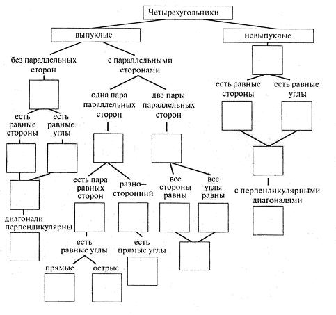 На перепутье. Заполнить таблицу "Четырехугольники".