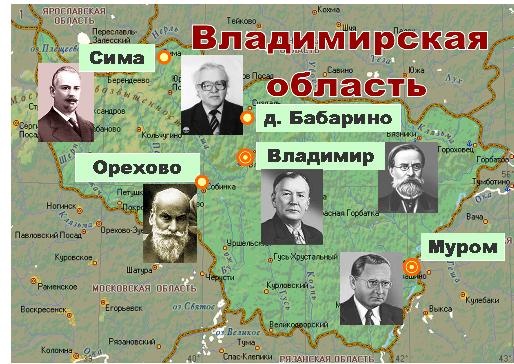 - сформировать у учащихся представление о роли ученых Владимирского края в развитии физики и техники на примере жизни и деятельности некоторых известных земляков;
