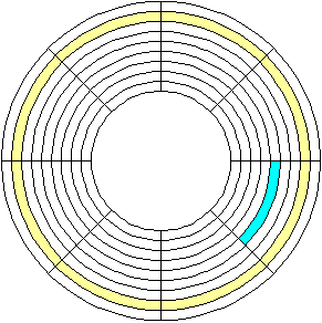 | Структура магнитных дисков | Рисунок17 | нет | Магнитные диски разделены на концентрические дорожки, а дорожки разбиты на сектора. Дисковод может записать/считать информацию из заданного сектора. Объем сектора - 512 байт. |
