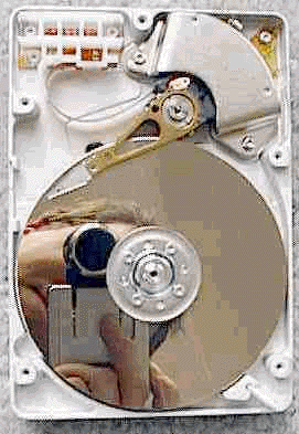 | Жесткий диск | Рисунок18 | Жесткий диск со снятой крышкой | Жесткий диск со своим дисководом - неразъемное устройство. На валу одного двигателя может быть несколько дисков. На каждую поверхность каждого диска приходится пара головок чтения/записи. |