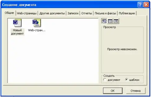 - В меню Файл выберите команду Создать. На экране появится диалоговое окно Создание документа.