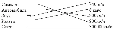 - Соедините карточки с названиями объектов и соответствующие им скорости.