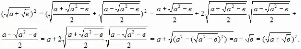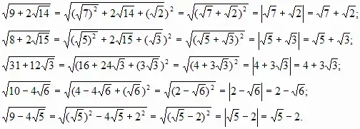 Вывод: Если подкоренное выражение представить в виде полного квадрата, то можно легко освободиться от внешнего радикала.