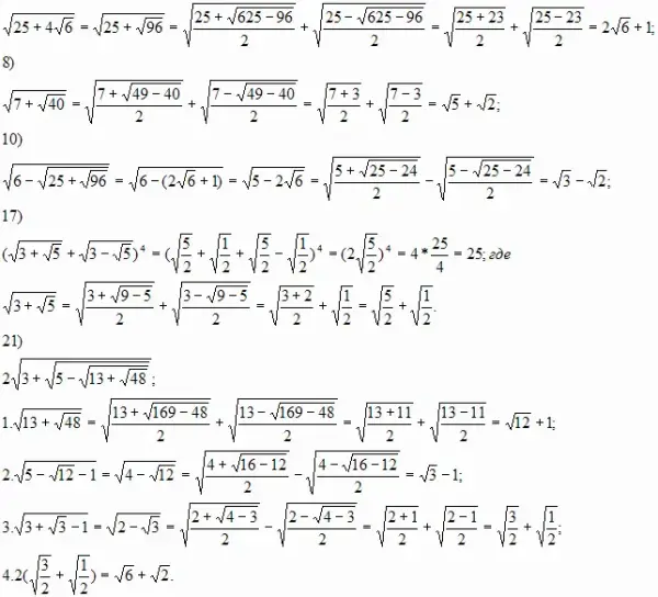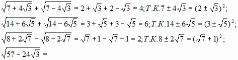 На этом примере мы убедились, что мы уже умеем преобразовывать двойные радикалы в процессе выполнения алгебраических действий.