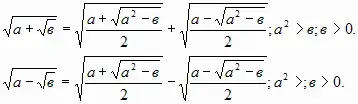 1) при выполнении алгебраических действий в некотором выражении, содержащем двойные радикалы.