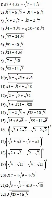 2) Научить преобразовывать двойные радикалы выделением полного квадрата подкоренного выражения и по формулам двойного радикала.